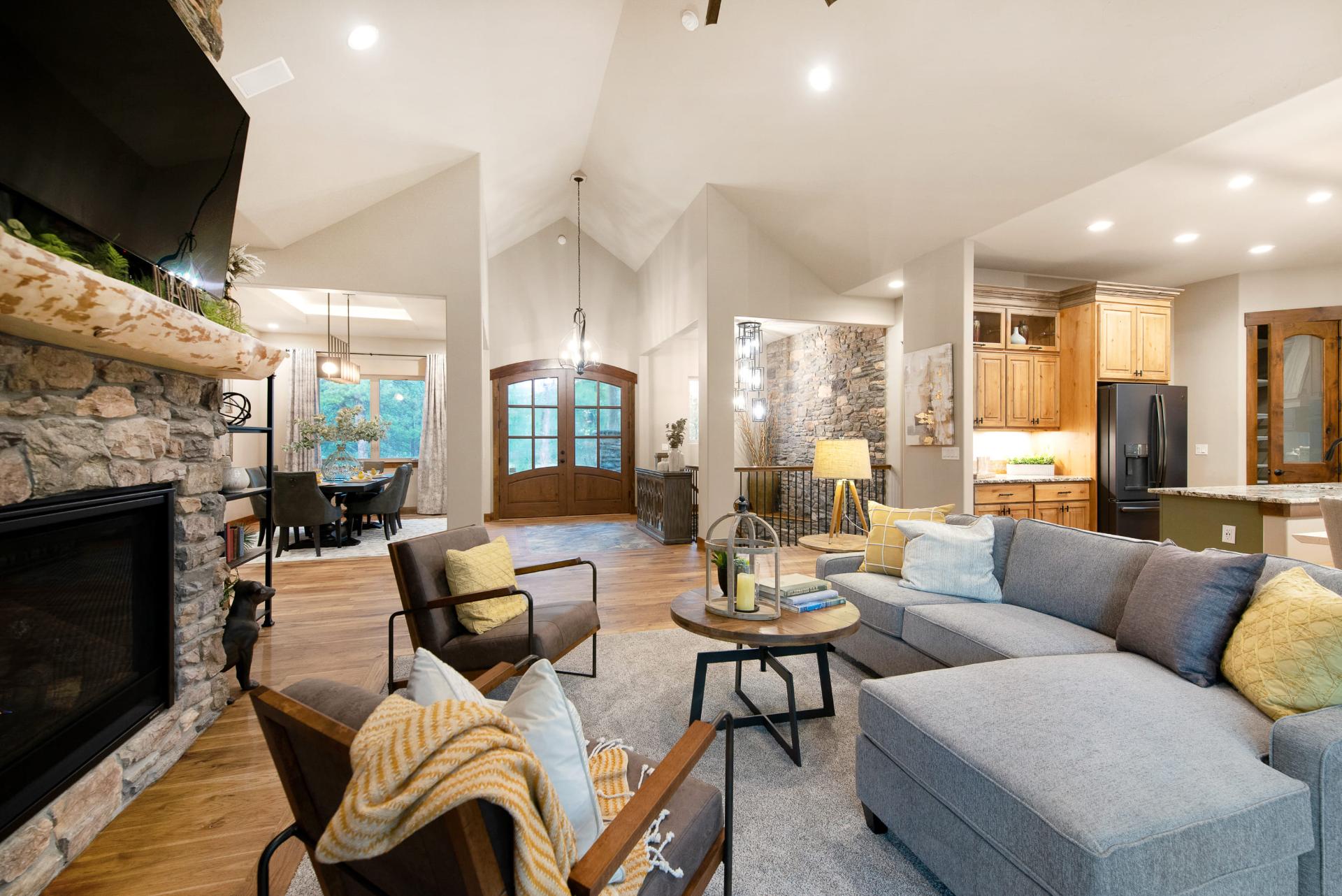 Our 2019 Parade of Homes entrant, Timber Ridge was inspired by Colorado. When Murphy’s Custom Homes started building their new home, they wanted to bring the feel of Mountain living to the comforts of a residential area. Tucked away in its own little section of timber woods, this home echoes some of the most luxurious vacation homes that you might find in the heart of the mountains, with modern finishes to warm and rustic features. However, this home isn’t one where you have to worry about your water source or what you might do in an emergency. This is high-class mountain living with the comforts of town within easy reach.