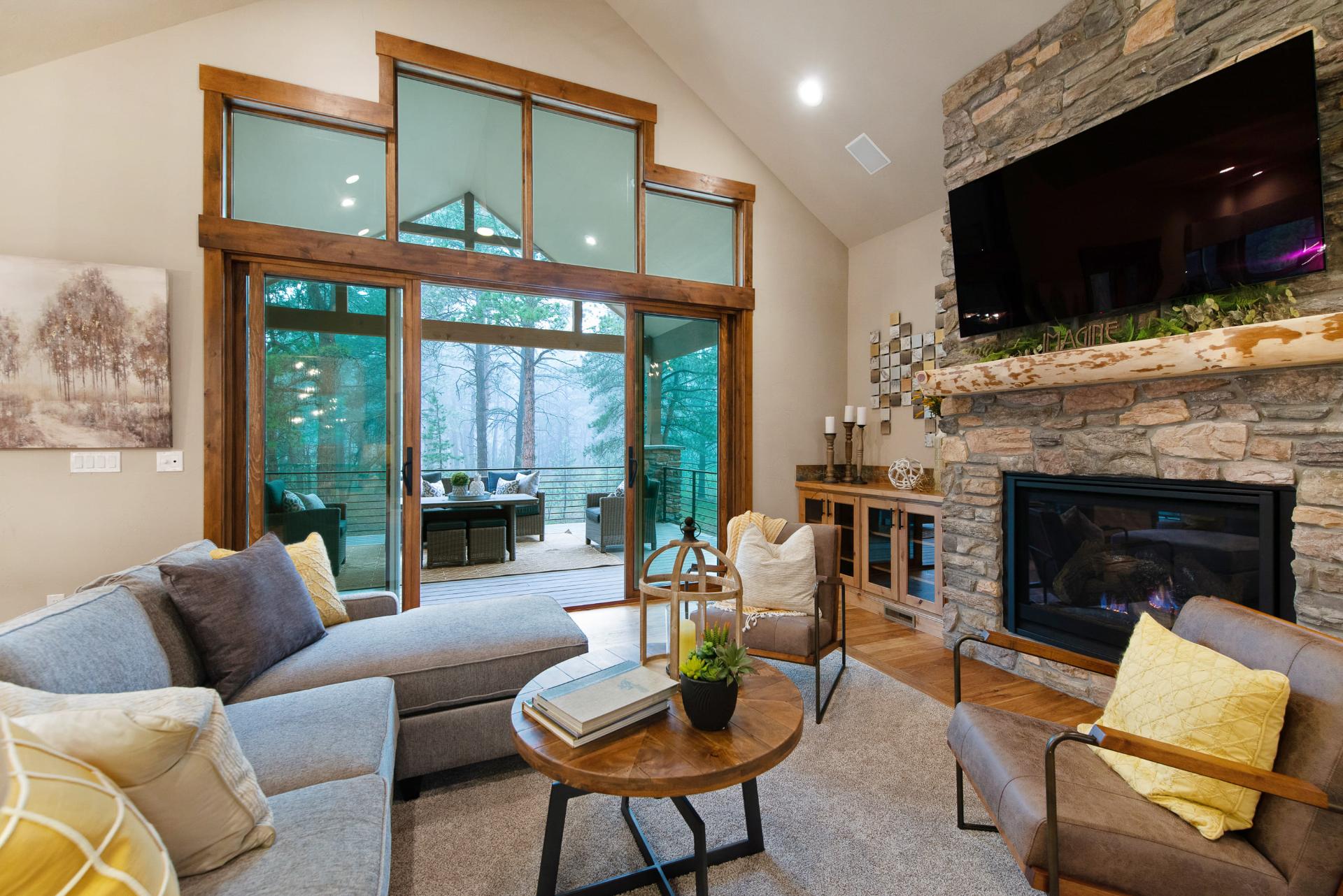 Winner of the People’s Choice Award from the Parade of Homes for houses for sale in the 1.3 to 1.5 million range in 2019, The Timber Ridge is an open and elegant home from Murphy Custom Homes that is nestled into its own little section of forest, giving it a secluded feel in Monument, Colorado.